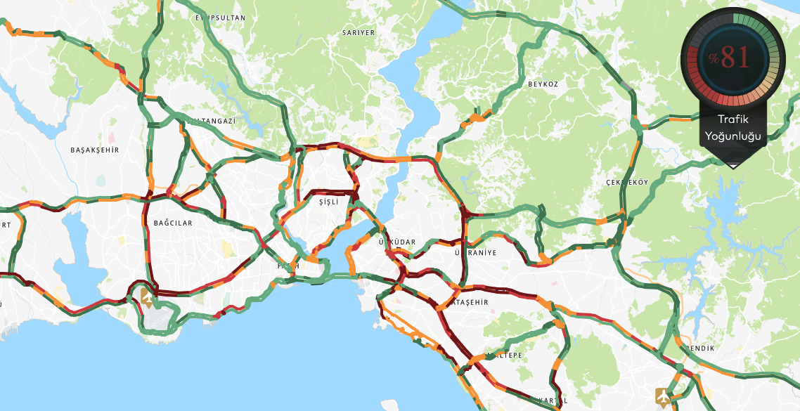 İBB UYM haritasından alınan anlık verilere göre, İstanbul’un her iki yakasında da trafik yoğunluğu en üst seviyeye ulaştı. Özellikle Avrupa Yakası’nda Şişli, Bağcılar ve Başakşehir hattı ile Anadolu Yakası’nda Ümraniye, Ataşehir ve Maltepe güzergahları tamamen kırmızı renge bürünmüş durumda.